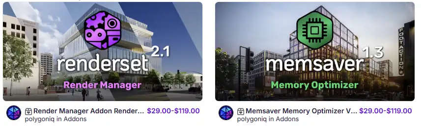 Better Lighting V2 は高品質なスタジオライティングや雰囲気のあるプリセットを提供。Gaffer は複数のライトやHDRIを一括管理できる強力なツールです。さらに Extra Lights は物理的に正確なフォトメトリックライトを追加し、建築ビジュアライゼーションや製品ショットのリアリティを大幅に向上させることができます。