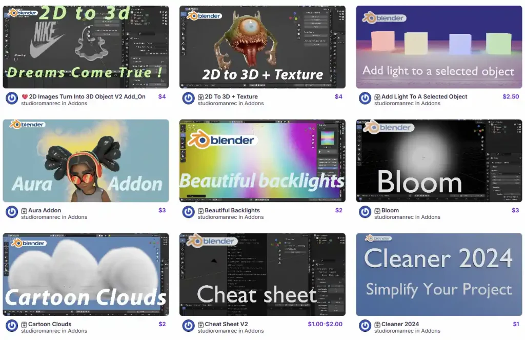 Simple N-Panel で散らかりがちなNパネルを整理し、Node Preview でシェーダーノードの結果を即座に確認。memsaver はCyclesレンダリング時のVRAM不足を軽減し、Outliner Pro は標準アウトライナーを強化。さらに Export to Blend で選択オブジェクトを別ファイルに書き出せます。まさに「足りなかった便利機能」をまとめて補完するバンドルです。