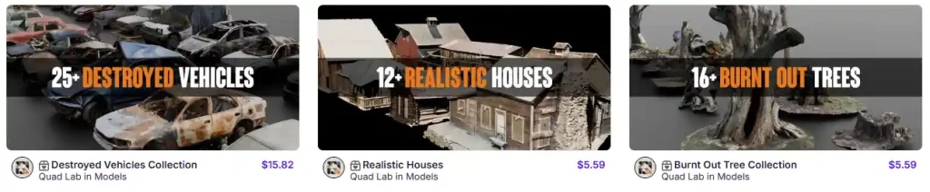 BlenderでNo.1のスキャッタリング(オブジェクト自動配置)アドオン「Geo-Scatter」本体と、7種類の高品質なバイオーム(環境アセットパック)がセットになっています。 草木や岩、都市の瓦礫などをリアルかつ効率的に配置し、詳細で魅力的な環境を素早く生成可能です。