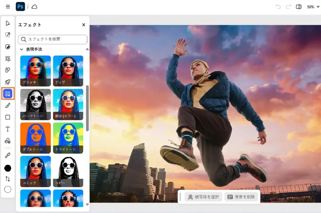 直感的に使える「効果(エフェクト)」で画像を補正することで、独自のスタイルを表現できるようになりました。