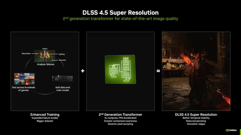 DLSS 4.5における最大の刷新の一つが、Super Resolution用の第2世代Transformerモデルの導入です。