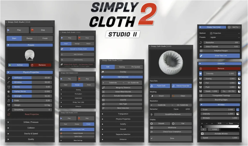 | Studio (v1.5) | Simply Cloth Studio v1.5 – Blender 5.0まで互換 | $27 |