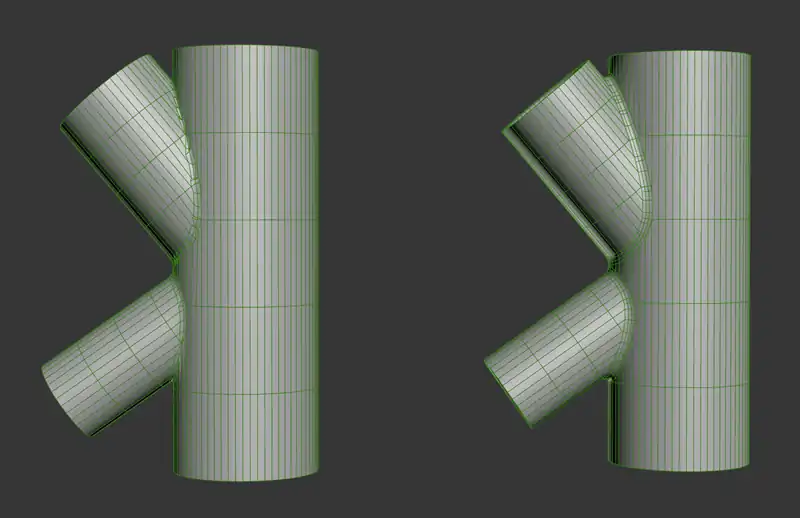 スマートベベルは エッジを越えて一定距離を維持しながら処理できる ため、複雑なメッシュや不規則なトポロジでもクリーンで一貫性のある結果を得られます。そのため、従来の面取りでは破綻しやすいケースでも、安定したベベル処理が可能です。