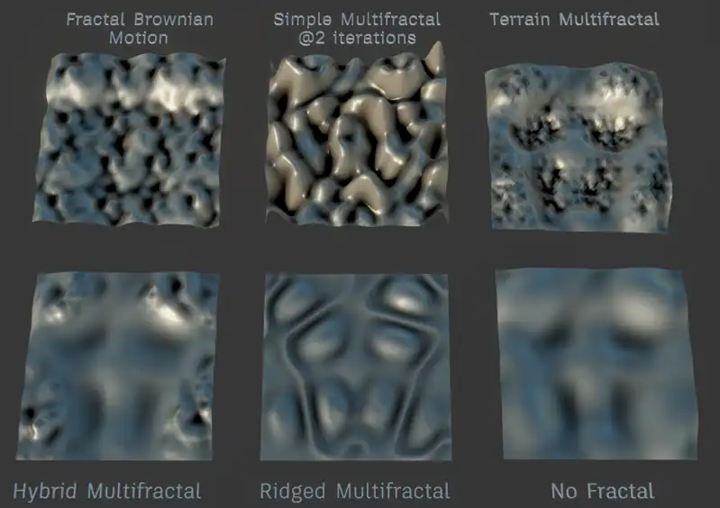 Noise Plusはベースとして「シンプレックス(Simplex)ノイズ」を使用し、モディファイヤスタック内で直接サーフェスのランダムなバリエーションを作成できます。複数のフラクタルタイプが組み込まれているため、追加プラグインを使わずに、より自然でディテール豊かなパターンを生成できます。