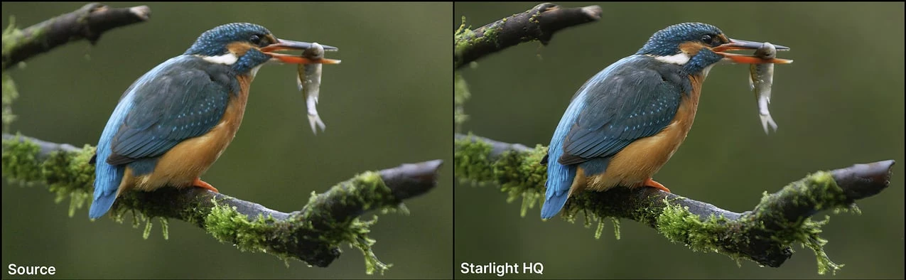 Starlight HQ は、元の映像が持つ意図や雰囲気を損なわずに、ディテールとシャープネスのバランスを高い水準で保つよう設計された、Starlight ファミリーの第四のバリエーションです。処理時間は Fast 2 より長くなりますが、その分だけ安定性が高く、より精緻で一貫した仕上がりを得られる点が特徴です。