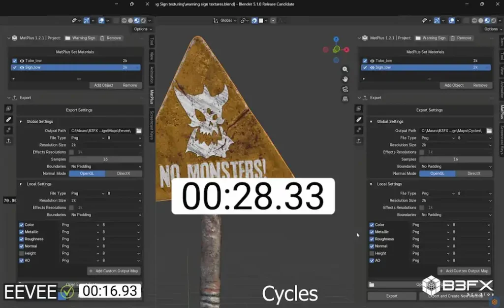 これまでBlender内でのベイクやキャッシュ処理にはCyclesエンジンが使用されていましたが、MatPlus 1.2からは新たにEeveeを使用したベイクシステムが利用可能になりました。