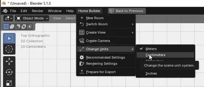 Home Builderメニューから直接、プロジェクトの単位(インチやセンチメートルなど)を素早く切り替えることが可能になりました。切り替えと同時にすべての寸法表示と入力値が自動的に更新されます。