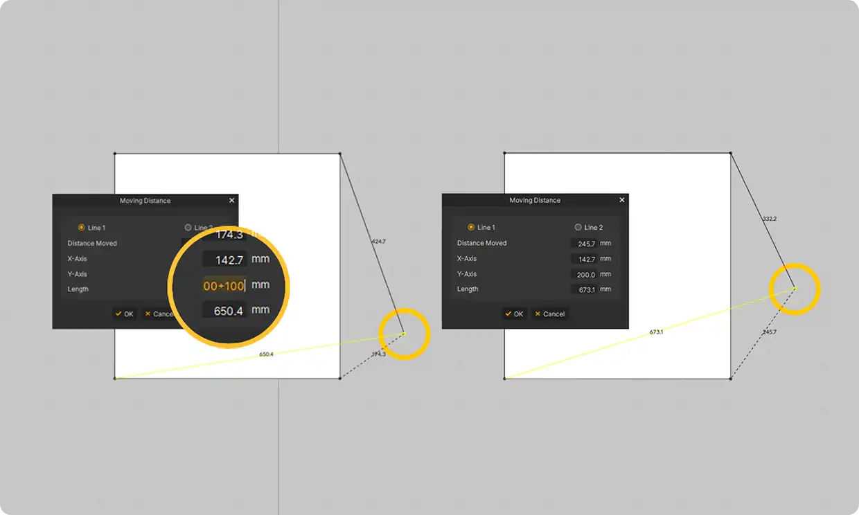数値フィールドに直接数式を入力でき、計算結果がガイド等にリアルタイムで反映されるようになりました。