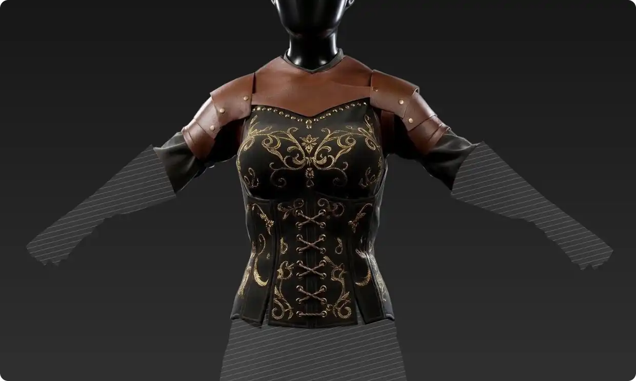 生成後は曲率の向きを調整して自然なたわみを持たせたり、レースの厚みや割り当てるファブリック(素材)を個別に変更することが可能で、手作業では煩雑になりがちなディテール制作の負担を大幅に軽減することができます。