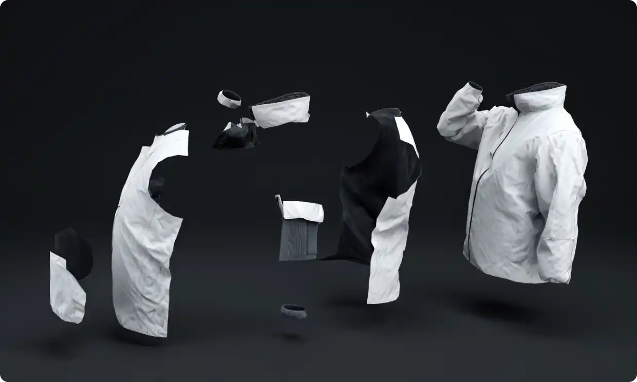 対象となるパーツを選択するだけで、複雑に重なり合った衣服であっても特定の箇所だけを独立して表示させることができます。アウターとインナーが重なる多層的なレイヤー構造の編集や、細かいパーツのシミュレーション状態を集中して確認したい場合に役立ちます。