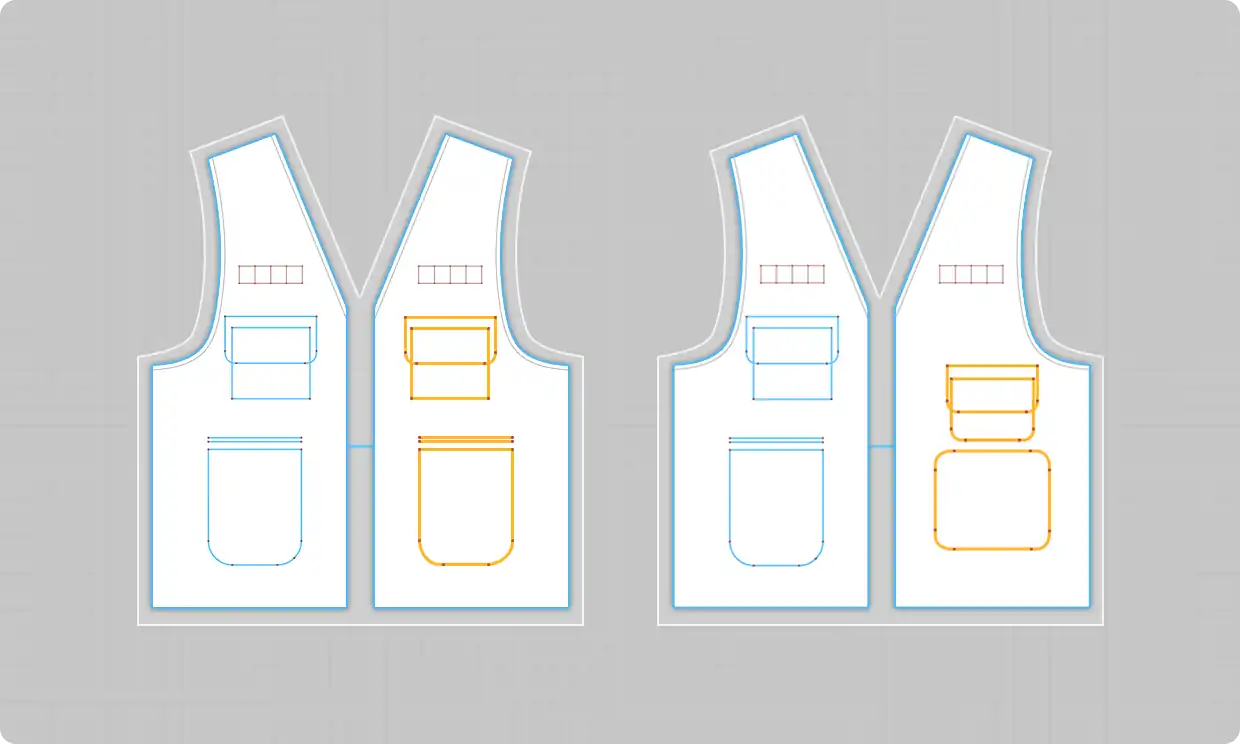 2Dパターン上でサイズを拡縮した際に、衣服の立体的なドレープ感やフィット感を維持したまま更新できるようになりました。