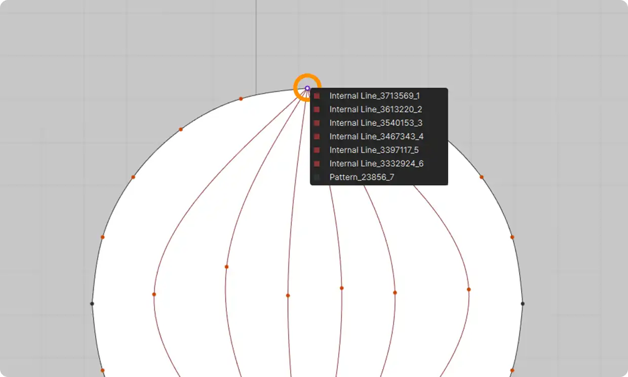 2Dウィンドウ上で対象となるアイレット(鳩目)の穴を順番に指定してエンターキーを押すだけで、編集可能なレース形状を自動で作成することができます。