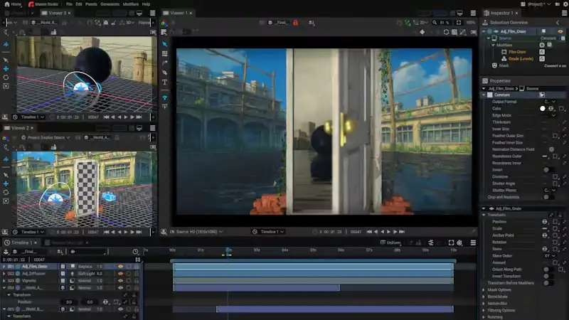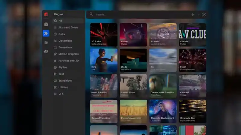 OpenFX標準をサポートしており、BorisFXやRE:Vision Effects、Digital Anarchyといった、業界標準のサードパーティ製プラグインをそのままプロジェクトに組み込んで使用することができます。