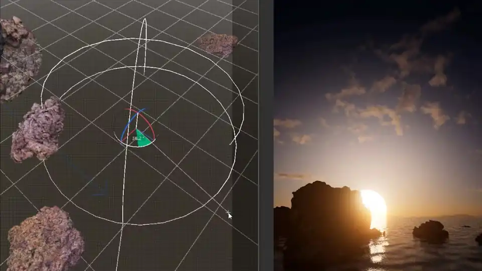 2026.5では、RedshiftのSun & Skyシステムに、新しい「Night Sky(夜空)」オプションが追加されました。世界中の任意の場所、任意の時間帯における夜空の背景システムを素早く生成できます。月明かりに照らされた都市から、天の川が広がる砂漠まで、シーンの条件に合わせたリアルな夜空のライティングと背景を構築可能です。