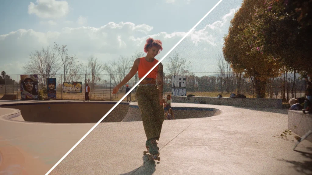 ノイズ(Noise)は、デジタル特有の不自然さが出やすかった従来の「ノイズ」エフェクトを置き換える、よりモダンで高品質なエフェクトです。コントロール可能なアニメーションノイズを追加するために設計されており、滑らかなグラデーションで発生しがちなバンディングの抑制や、繊細なテクスチャを自然に加えることができます。