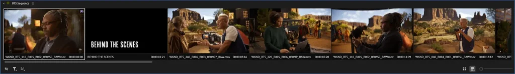 例えば、タイムルーラー上で「シーケンス再生モード」と「クリップ再生モード」をシームレスに切り替えることが可能です。シーケンスモードでは作品全体を素早くナビゲートし、クリップモードでは誤って別のクリップに移動してしまうのを防ぎながら、目の前のクリップの調整に深く集中することができます。