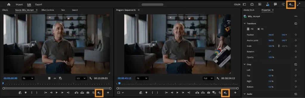 視覚的な編集に集中したい時や、タイミングの確認、または再生中に一時的に音を消したい場合に非常に便利です。なお、ミュート状態はプロジェクトに保存されず、Premiere Proを再起動するとリセットされるため、意図せずミュートしたままになるのを防げます。