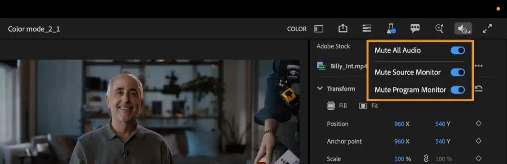 クリップやトラックレベルのオーディオ設定を変更することなく、シーケンス内のすべてのオーディオ再生をすばやくミュートできる「グローバルミュート」機能が追加されました。
