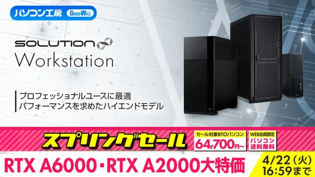 PC関連 パソコン工房スプリングセールが開催!ワークステーション・クリエイターパソコンが限定特価に!